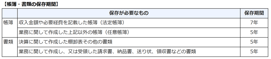その他、事業所得として申告する場合には、帳簿・書類の保存義務があります。